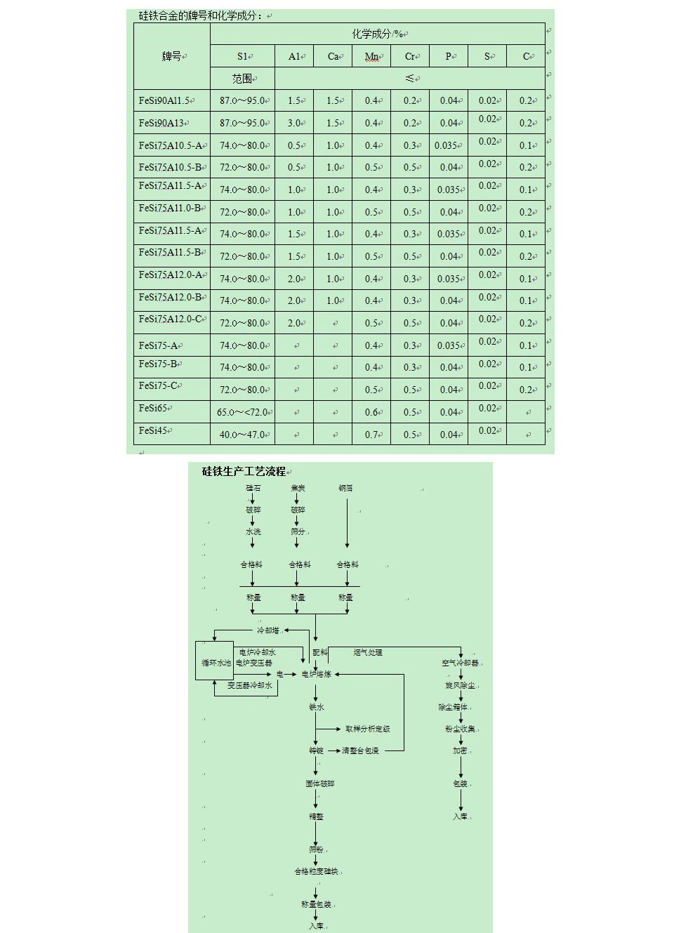 硅鐵是鐵和硅組成的鐵合金。 硅鐵是以焦炭、鋼屑、石英(或硅石)為原料,用電爐冶煉制成的鐵硅合金。由于硅和氧很容易化合成二氧化硅,所以硅鐵常用于煉鋼時作脫氧劑,同時由于SiO2生成時放出大量的熱,在脫氧的同時,對提高鋼水溫度也是有利的。同時,硅鐵還可作為合金元素加入劑,廣泛應用于低合金結構鋼、彈簧鋼、軸承鋼、耐熱鋼及電工硅鋼之中,硅鐵在鐵合金生產及化學工業中,常用作還原劑。硅鐵在鋼工業、鑄造工業及其他工業生產中被廣泛應用。