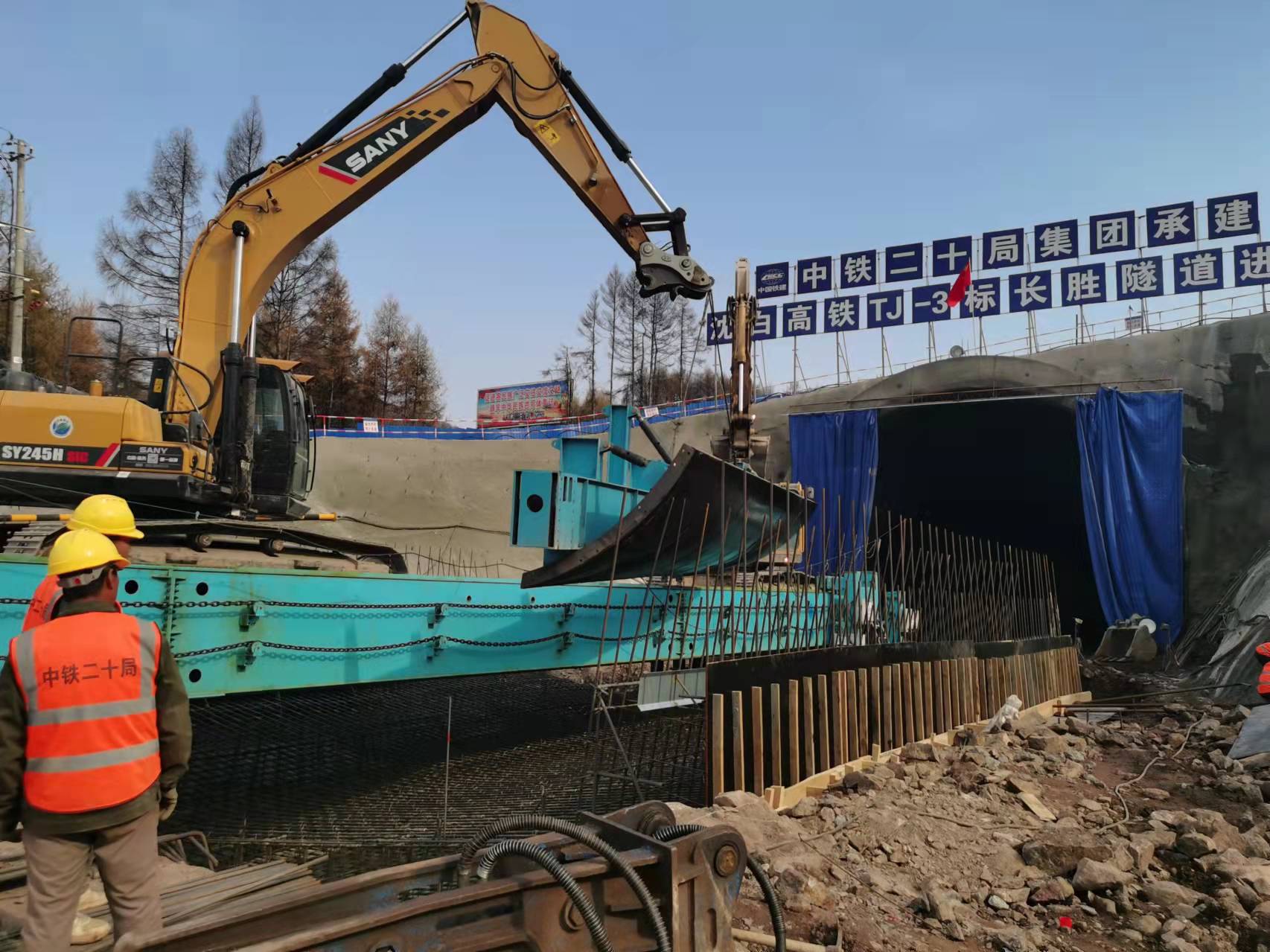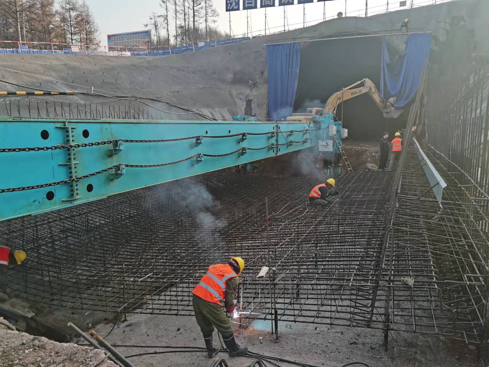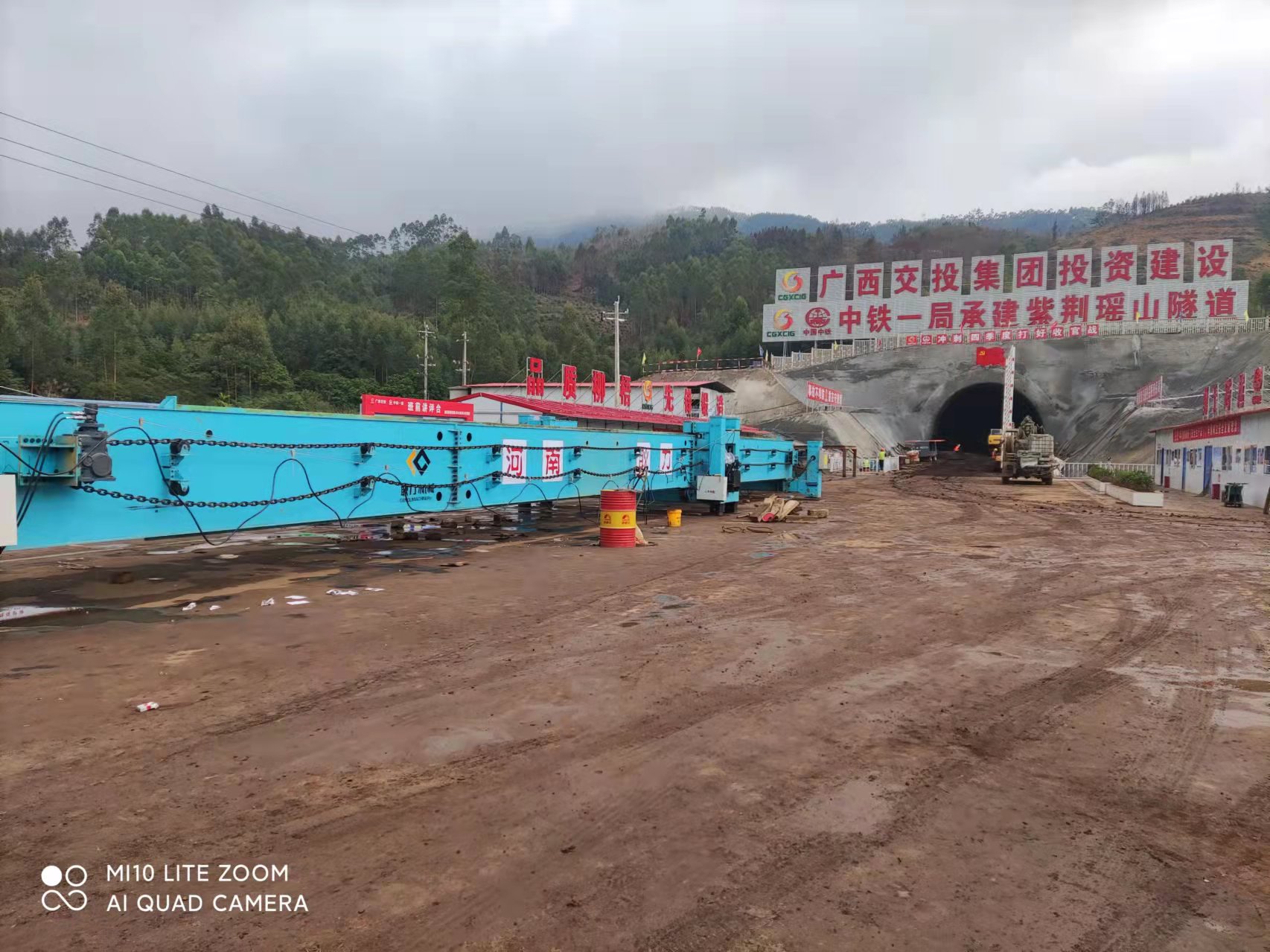 襯砌開始,臺車就位、模板定位完成,模板頂升機構將臺車頂起,左右平移機構將臺車模板調節至隧道中心,收立模機構撐起兩邊側模,臺車兩端封閉,開始混凝土澆筑襯砌。