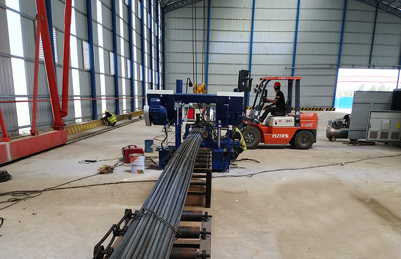 該生產線是大型鋼筋加工企業必備的鋼筋加工設備,可對各種圓鋼、螺紋鋼按客戶需求快速準確的定尺、鋸斷、墩粗、套絲、打磨并分級儲存,然后分類運往各個彎曲、滾籠焊接等后續加工場地。